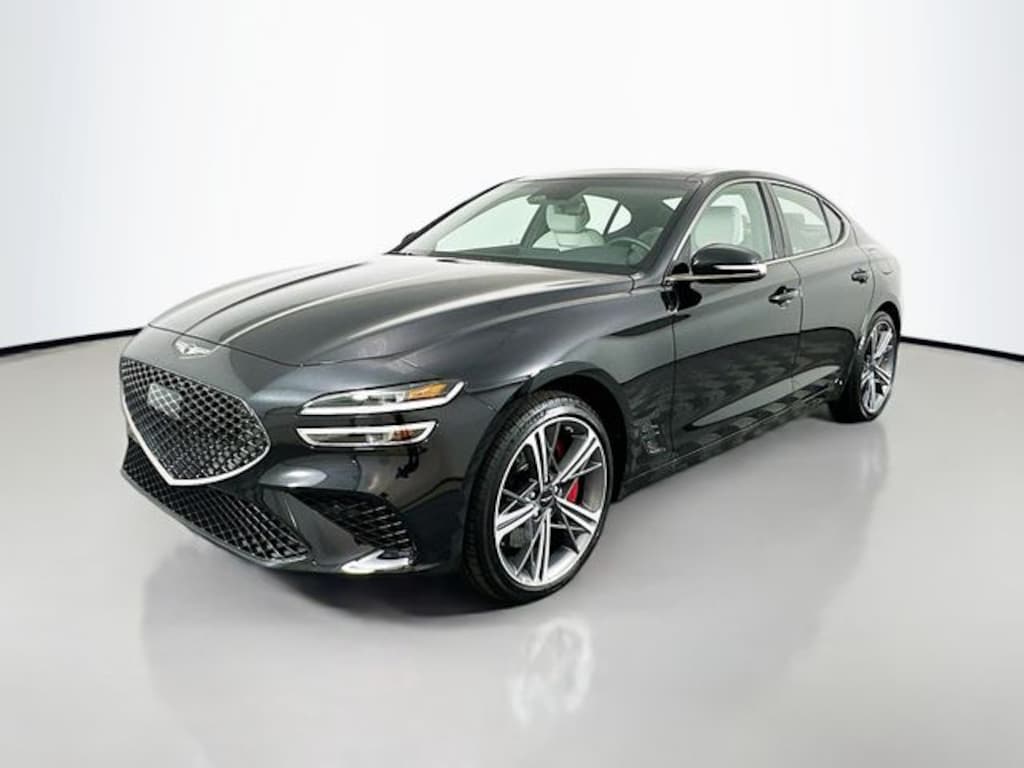 Certified. Black 2025 Genesis G70 2.5T Sport Prestige AWD 8-Speed Automatic I4 12-Way Power Front Passenger Seat, 4-Wheel Disc Brakes, 6 Speakers, ABS brakes, Acoustic Front Door Glass, Air Conditioning, Alloy Pedals, Alloy wheels, AM/FM radio: SiriusXM, Android Auto & Apple CarPlay, Anti-whiplash front head restraints, Auto High-beam Headlights, Auto-dimming Rear-View mirror, Automatic temperature control, Brake assist, Bumpers: body-color, Dark Chrome Grille & Daylight Opening Trim, Delay-off headlights, Driver door bin, Driver vanity mirror, Dual front impact airbags, Dual front side impact airbags, Electronic Stability Control, Emergency communication system: Genesis Connected Services, Exterior Parking Camera Rear, Forward & Reverse Parking Distance Warning, Four wheel independent suspension, Front anti-roll bar, Front Bucket Seats, Front Center Armrest, Front dual zone A/C, Front Passenger Seat Walk-In Device, Front reading lights, Fully automatic headlights, Garage door transmitter: HomeLink, Heated door mirrors, Heated front seats, Heated Multi-Adjustable Front Bucket Seats, Heated steering wheel, Illuminated entry, Integrated Memory System (IMS), Knee airbag, Leather Seating Surfaces, Leatherette Seating Surfaces, Low tire pressure warning, Option Group 02, Outside temperature display, Overhead console, Panic alarm, Passenger vanity mirror, Power driver seat, Power Folding ECM Outside Mirrors, Power passenger seat, Power steering, Power Telescoping Steering Wheel, Power windows, Radio: AM/FM/SiriusXM/HD Audio System, Radio: AM/FM/SiriusXM/HD Lexicon Prem Audio System, Rain-Sensing Wipers, Rear reading lights, Rear seat center armrest, Rear side impact airbag, Rear window defroster, Remote keyless entry, Security system, Speed-Sensitive Wipers, Split folding rear seat, Sport Aluminum Trim, Sport Prestige Package, Steering wheel mounted audio controls, Traction control, Turn signal indicator mirrors, Variably intermittent wipers, Ventilated Front Seats, Wheels: 19" x 8.0J Fr & 19" x 8.5J Rr Alloy, Wheels: 19" x 8.0J Fr & 19" x 8.5J Rr Sport Alloy, Wide Sunroof, Wireless Phone Charger.