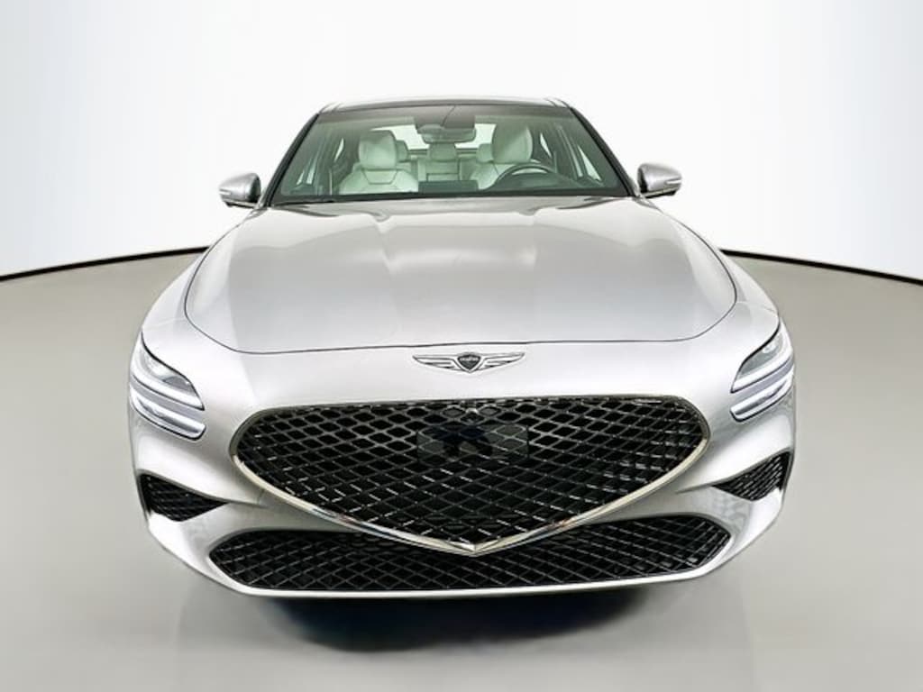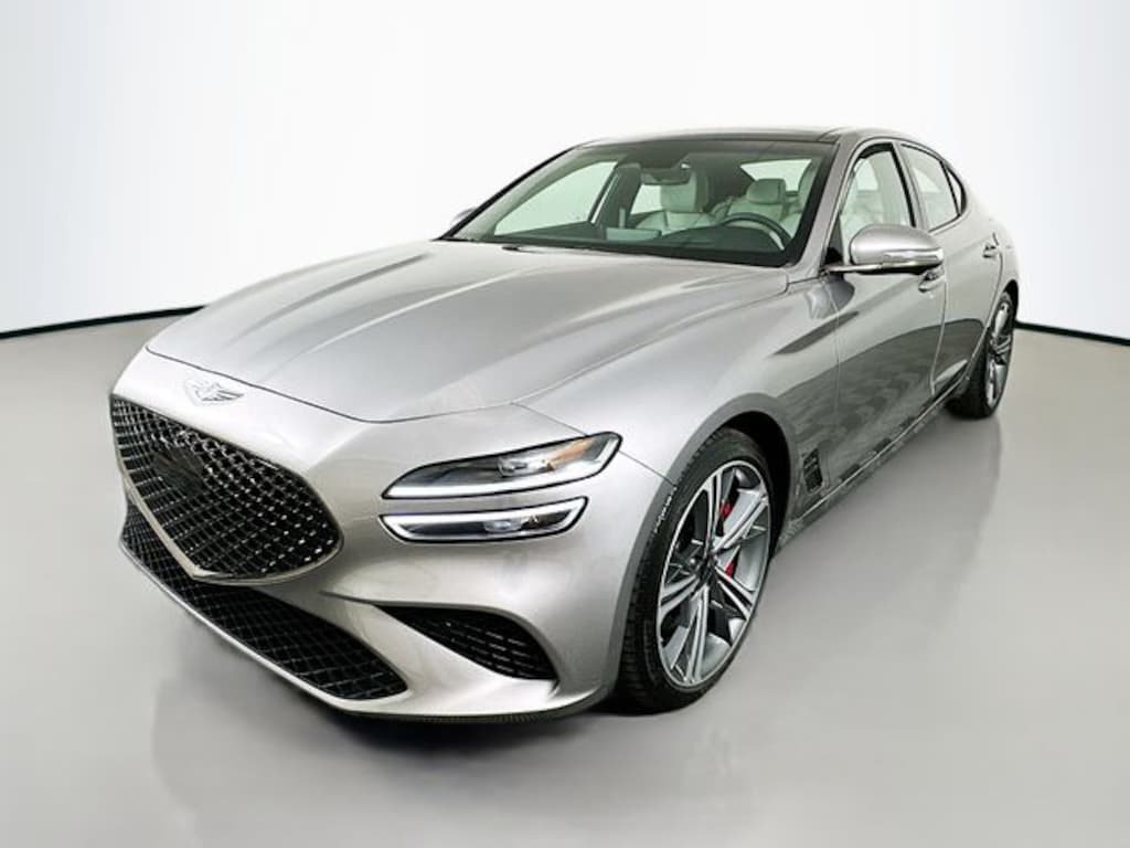Certified. Silver 2025 Genesis G70 3.3T Sport Prestige RWD 8-Speed Automatic 3.3L V6 DGI DOHC 24V 15 Speakers, ABS brakes, Air Conditioning, Alloy wheels, AM/FM radio: SiriusXM, Android Auto & Apple CarPlay, Anti-whiplash front head restraints, Auto High-beam Headlights, Auto-dimming door mirrors, Auto-dimming Rear-View mirror, Automatic temperature control, Brake assist, Bumpers: body-color, Delay-off headlights, Driver vanity mirror, Dual front impact airbags, Dual front side impact airbags, Electronic Stability Control, Electronically Controlled Suspension, Emergency communication system: Genesis Connected Services, Four wheel independent suspension, Front Bucket Seats, Front Center Armrest, Front dual zone A/C, Front reading lights, Fully automatic headlights, Garage door transmitter: HomeLink, Head-Up Display (HUD), Heated door mirrors, Heated front seats, Heated Steering Wheel, Htd & Ventilated Multi-Adjustable Fr Bucket Seats, Illuminated entry, Knee airbag, Leather Seating Surfaces, Limited-Slip Differential, Low tire pressure warning, Memory seat, Microfiber Suede Headliner & Pillars, Nappa Leather Seating Surfaces, Navigation System, Occupant sensing airbag, Option Group 04, Outside temperature display, Overhead console, Panic alarm, Power door mirrors, Power driver seat, Power moonroof, Power passenger seat, Power steering, Power Trunk, Radio: AM/FM/SiriusXM/HD Lexicon Prem Audio System, Rain sensing wipers, Rear window defroster, Remote keyless entry, Security system, Speed-sensing steering, Speed-Sensitive Wipers, Split folding rear seat, Sport Prestige Package, Steering wheel memory, Steering wheel mounted audio controls, Surround View Monitor w/Blind Spot View Monitor, Traction control, Turn signal indicator mirrors, Variably intermittent wipers, Ventilated front seats, Wheels: 19" x 8.0J Fr & 19" x 8.5J Rr Sport Alloy.