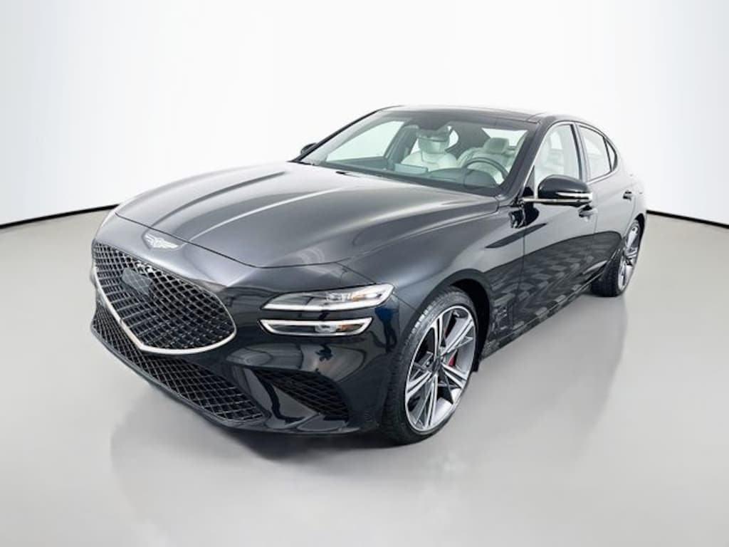 Certified. Black 2025 Genesis G70 3.3T Sport Advanced RWD 8-Speed Automatic 3.3L V6 DGI DOHC 24V ABS brakes, Active Cruise Control, Alloy wheels, Auto High-beam Headlights, Electronic Stability Control, Front dual zone A/C, Fully automatic headlights, Heated door mirrors, Heated front seats, Illuminated entry, Low tire pressure warning, Navigation System, Power driver seat, Power moonroof, Power steering, Rain sensing wipers, Remote keyless entry, Traction control, Ventilated front seats.